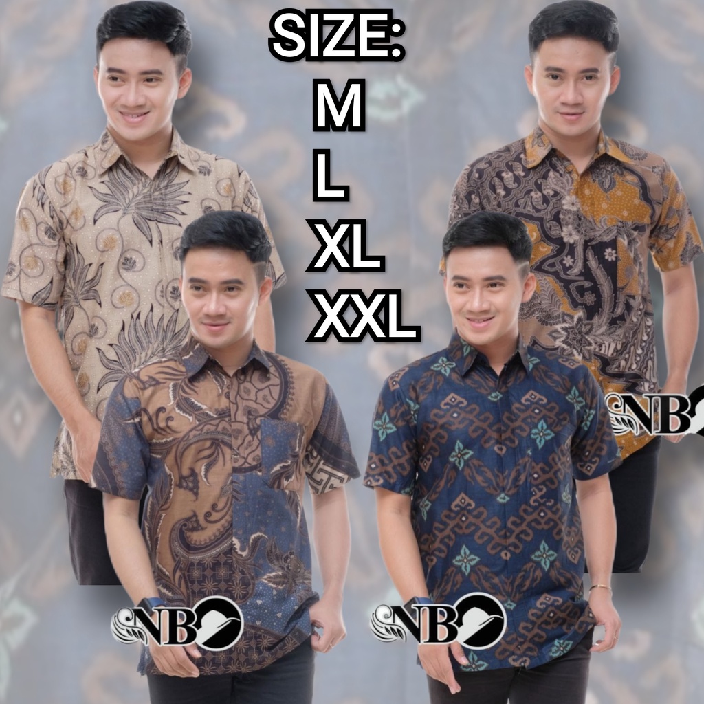 Batik Pria Lengan Pendek BATIK MURAH HRB026 motif TERBARU 2021 Kode 002 size M L XL XXL BIG SIZE 3L 4L 5L 6L Reguler Fit