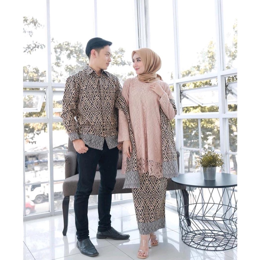 WOU BATIK - Batik Couple Laskita Kebaya Brokat Polos Premium Rok Span Pinggang Karet Allsize Kemeja Pria Lengan Panjang Size M,L,XL